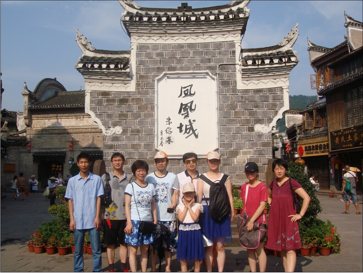 有“中国最美丽的小城”之美誉的凤凰古城是我们行程的第一站,虽然刚刚经历了一场大水的洗礼,很多地方都在修缮,但凤凰古城还是以其迷人的自然风景与人文风情,使我们流连忘返。我们参观了沈从文故居、东北门城楼、吊脚楼群、沙湾风景区、苗族银饰品一条街、土家苗家蜡染作坊、民国首届内阁总理——熊希龄故居、杨家祠堂等,又在沱江上泛舟,以不同的方式感受古城的魅力。在游览电影《芙蓉镇》的拍摄地——芙蓉镇时,芙蓉镇电影院、水帘洞般的瀑布、卖牛角梳的爱国摊主等,都给我们留下了深刻的印象。天下第一漂——猛洞河漂流是此次行程中最惊险刺激、令成员们尖叫最多的,三个多小时的漂流,我们一路尖叫,一路呼吸大自然的新鲜空气,欣赏河两岸的美丽风光,身心得到了完全的放松。接着,我们游览了张家界的世界自然遗产核心景区武陵源景区。在“袁家界”,我们游览了电影《阿凡达》中“哈利路亚山”原型“乾坤柱”、天下第一桥、九天玄梯、猿人望月、拜仙台、迷魂台、后花园等景点;在“天子山”,我们游览了天子阁、西海石林、御笔峰、仙女献花、贺龙公园、贺龙铜像等景点;在“人间瑶池宝峰湖”,我们乘舟游览千姿百态的泼墨水彩画、看青峰倒影、观赏激情奔放的土家族歌舞,用心来感悟民族风情的古朴和神秘。“中国最美丽的大峡谷”——“金鞭溪”充分展示了大自然的神奇,金鞭溪是天然形成的美丽溪流,溪谷植被繁茂,溪水四季清澈,被称为“山水画廊”、“人间仙境”,沿途有金鞭岩、神鹰护鞭、劈山救母、醉罗汉、文星岩、紫草潭、千里相会,水绕四门等著名景点。最后,我们游览了张家界国家森林公园,登上“黄石寨”,游览了六奇阁、摘星台、双门迎宾、天然壁画等景点,“不上黄石寨,枉到张家界”,我们也不枉到张家界了。
